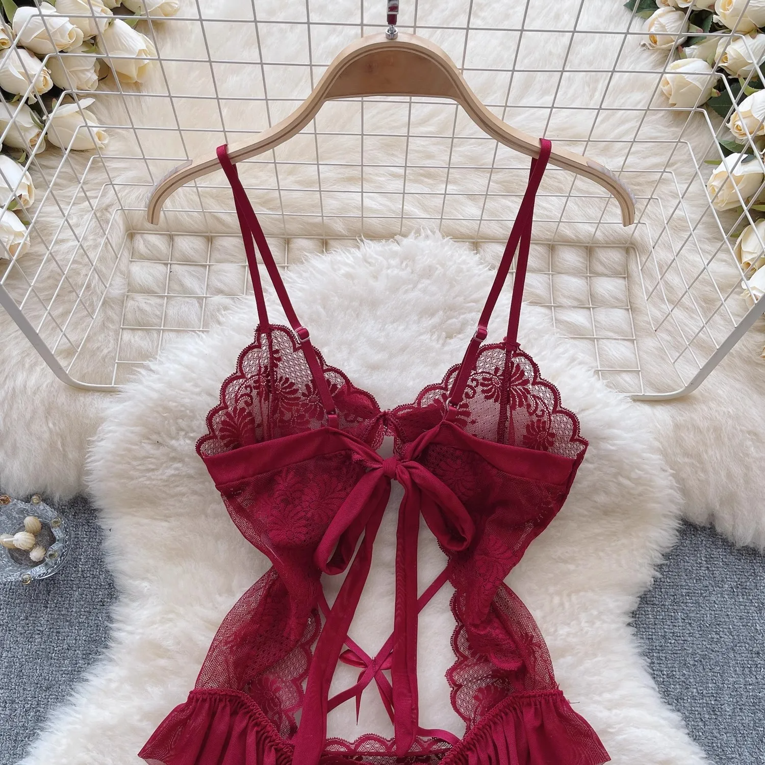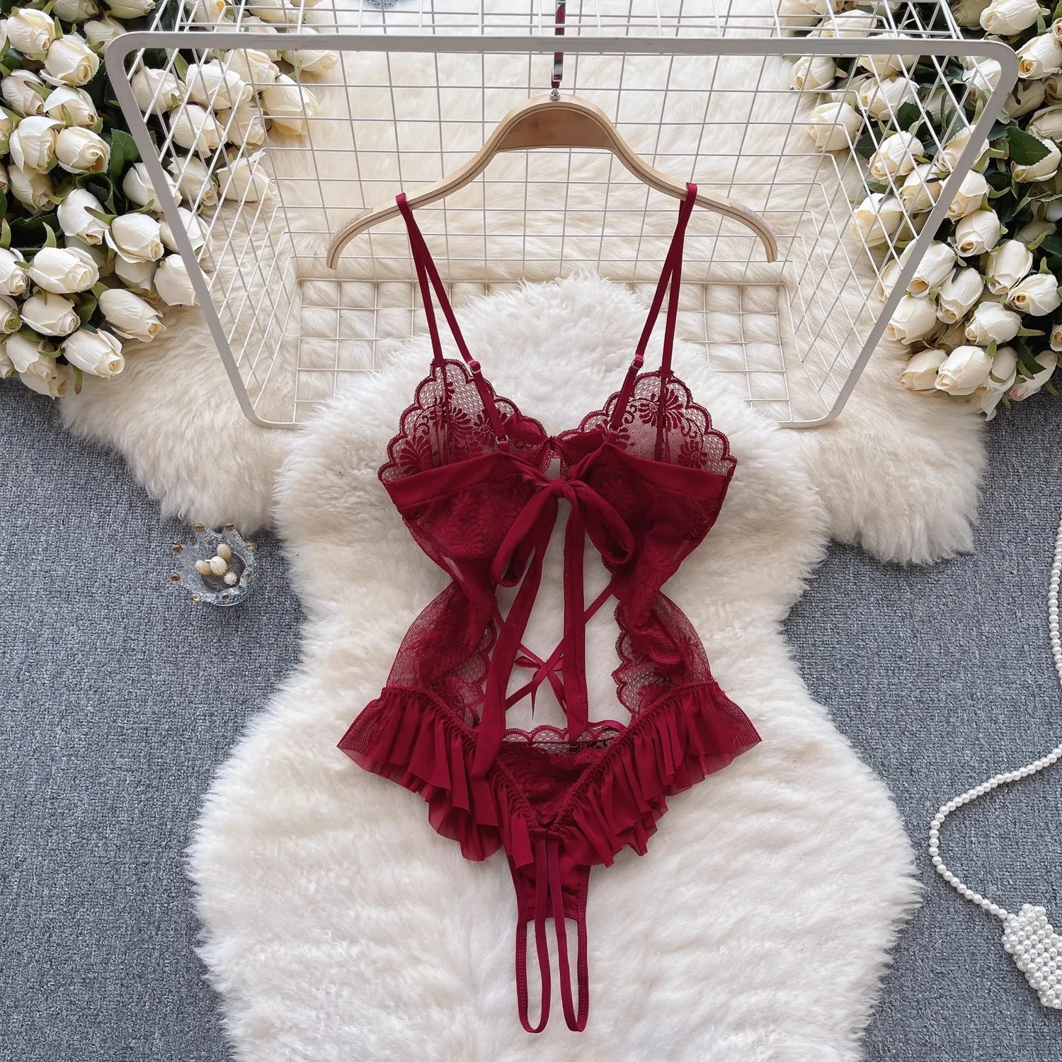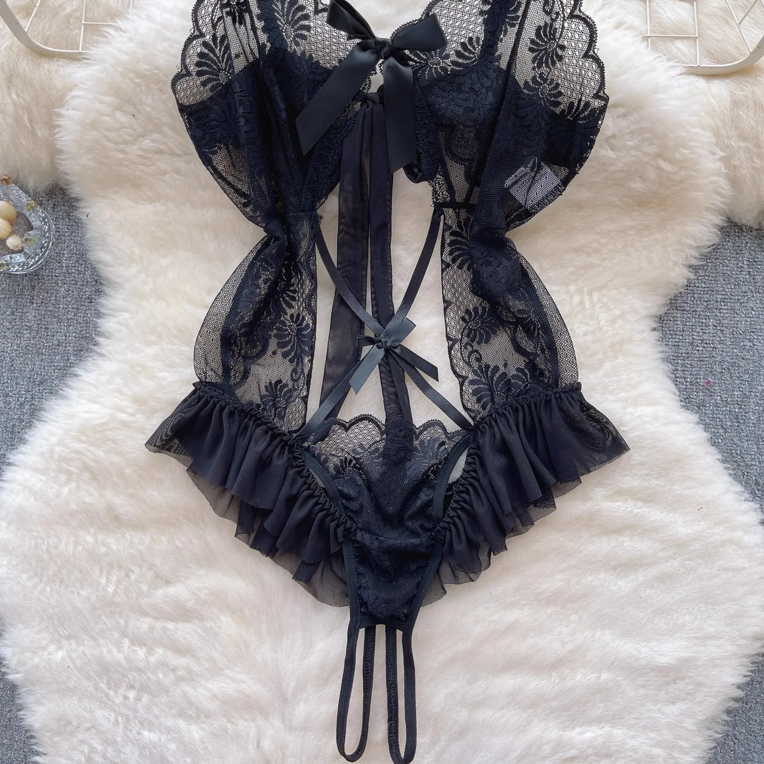 Bu dantel bodysuit ile her zaman zarif, sofistike ve çekici hissedin. 🌟🖤